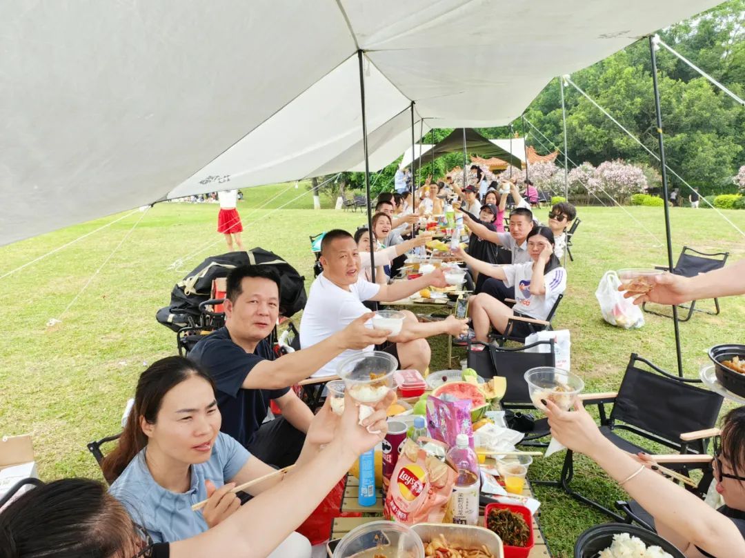 历经约1.5个小时骑行,队伍陆续到达终点,完成10公里骑行挑战。趁着天气晴朗,公司在终点处安排了户外露营,大家欢声笑语,畅快交谈,在其乐融融的氛围中将此次团建活动推向高潮。